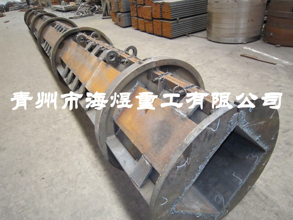 方桿模具是鋼板經壓制而成,筒體上布有縱向和環形盤板,具有強度大,剛性好,經久耐用等特點。鋼模采用分段加工,整體組裝,具有運輸方便,組裝迅速,維修方便等優點,是制作方形預應力鋼筋混凝土電桿的必備模具,亦可制作方形非預應力鋼筋混凝土電桿。
