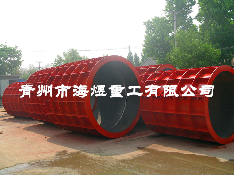 1800×2000水泥管模具外筋板設計布局合理,焊接牢固;跑圈采用高碳鋼鑄造,經車床加工,尺寸精準,制管時采用C30干硬性混凝土,水灰比為0.3~0.36,生產1根直徑1800mm的鋼筋混凝土管只需要20分鐘,生產效率高,外觀質量好。
