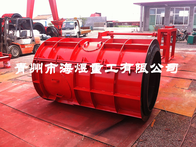 檢查井模具是在平口涵管模具的基礎上,根據裝配式鋼筋混凝土檢查井圖集要求,在平口模具筒體上預留大小不一的1-4個孔,并用螺拴固定孔蓋,拆裝方便;檢查井一般由收口、上井室、下井室和底板拼裝組成,用懸輥工藝成型井室,用振動工藝生產收口部分。