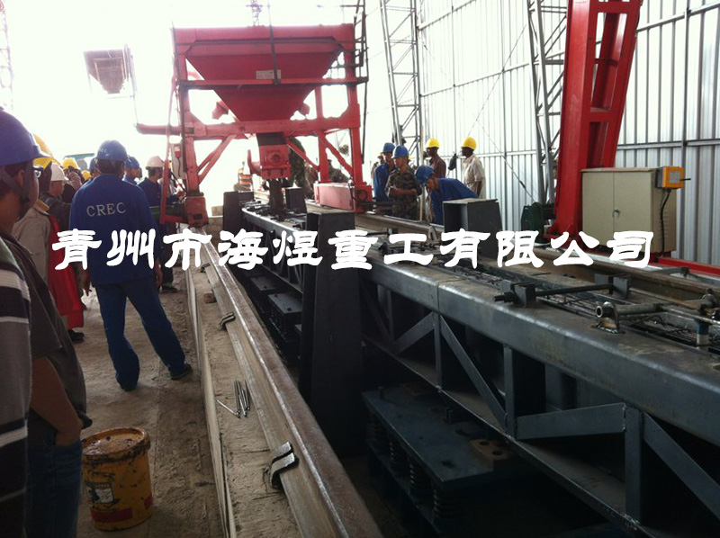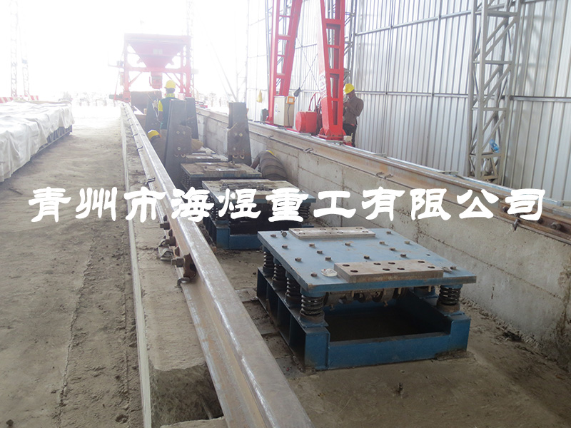 接觸網(wǎng)支柱振動(dòng)臺(tái)取消了臺(tái)架,彈簧與激振器組成支柱,支柱上裝有卡模裝置,模底有相同振幅的振源,克服了模底各點(diǎn)振幅差大的缺點(diǎn),重量輕,降低了動(dòng)力消耗。混凝土表面不吸空氣,振動(dòng)橫向(水平)傳遞,氣泡易排出,制成的混凝土構(gòu)件質(zhì)量好。