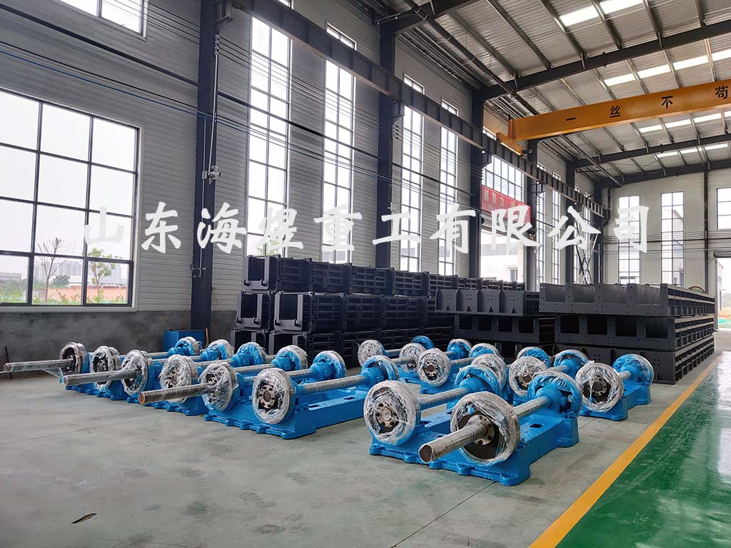 光伏樁離心機是離心成型預應力光伏樁、混凝土管樁、方樁的核心設備,由托輪、軸、軸承座、軸承、緊定套、聯軸器、底座、主傳動皮帶輪、電機和控制部分組成,轉速一般為五階段,低速,中低速,中速,中高速和高速,通過這五個階段的轉速,將模具內混凝土中多余的水和空氣排出,從而成型PHC管樁或方樁。