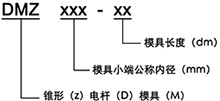 ![]() 例:DMZ150-80表示小端直徑為150、長8m的錐形電桿模具。 ![]() 例:DMD300-90表示直徑為300,長9m的等徑電桿模具。 二、電桿模具的品種和規(guī)格 模具的品種和規(guī)格見表1和表2。