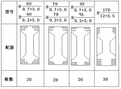 1.1 所用預應主筋應符合GB/T5223《預應力砼用鋼絲》。 1.2 在編組及張拉時應保證預應力鋼絲受力均勻。 1.3 主筋下料長度誤差不大于2.0mm,鐓頭直徑應在Ф7.0~Ф7.5之間,鐓頭高度為4.0~4.5mm。 1.4 各種型號支柱下料長度、根數、張拉值。