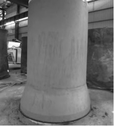 (1)主要原因:所購置芯模振動設備在生產(Φ1000~Φ1200)mm×2500mm承插口管時,承插口凸出段在脫模后易出現管體塌落現象,主要原因是這種管型所用骨架為單層骨架,承口段成型后混凝土用量過多、鋼筋少、結構尺寸突變導致混凝土因自重過大而塌落。 (2)改進措施:①對小口徑承插管所用骨架的承插段采用雙層骨架,適當增加承插段骨架鋼筋與混凝土物料的接觸面積,從而提高該處鋼筋與混凝土的結合力;②脫內、外模時,必須保證行車吊具的垂直中心線與模具的垂直中心線重合。 (3)改進效果:通過對小口徑承插管承口段骨架加強處理,在隨后的小口徑承插管生產、成型脫模后再未出現承口段混凝土塌落的現象;同時通過及時對承口段凸出部分外表面進行抹面修飾,使得小口徑承插管外觀質量非常完美(見圖3)。 ![]() 圖3 改進后小口徑承插管外觀情況